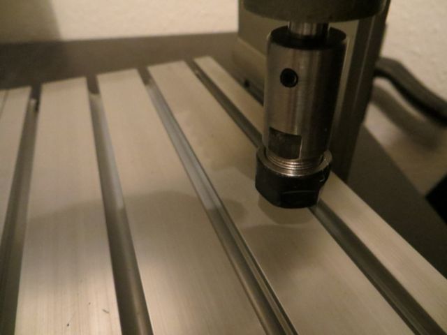 I then did the initial tests. These were turning on the control box, ensuring the emergency stop was not pressed. The fan started up fine. I then turned on the spindle, and heard it rev up nicely. I turned the spindle off, and then checked the steppers. I tried to manually turn each stepper motor, noting the stiffness that in theory shows that the steppers are connected to their controllers. All was fine.