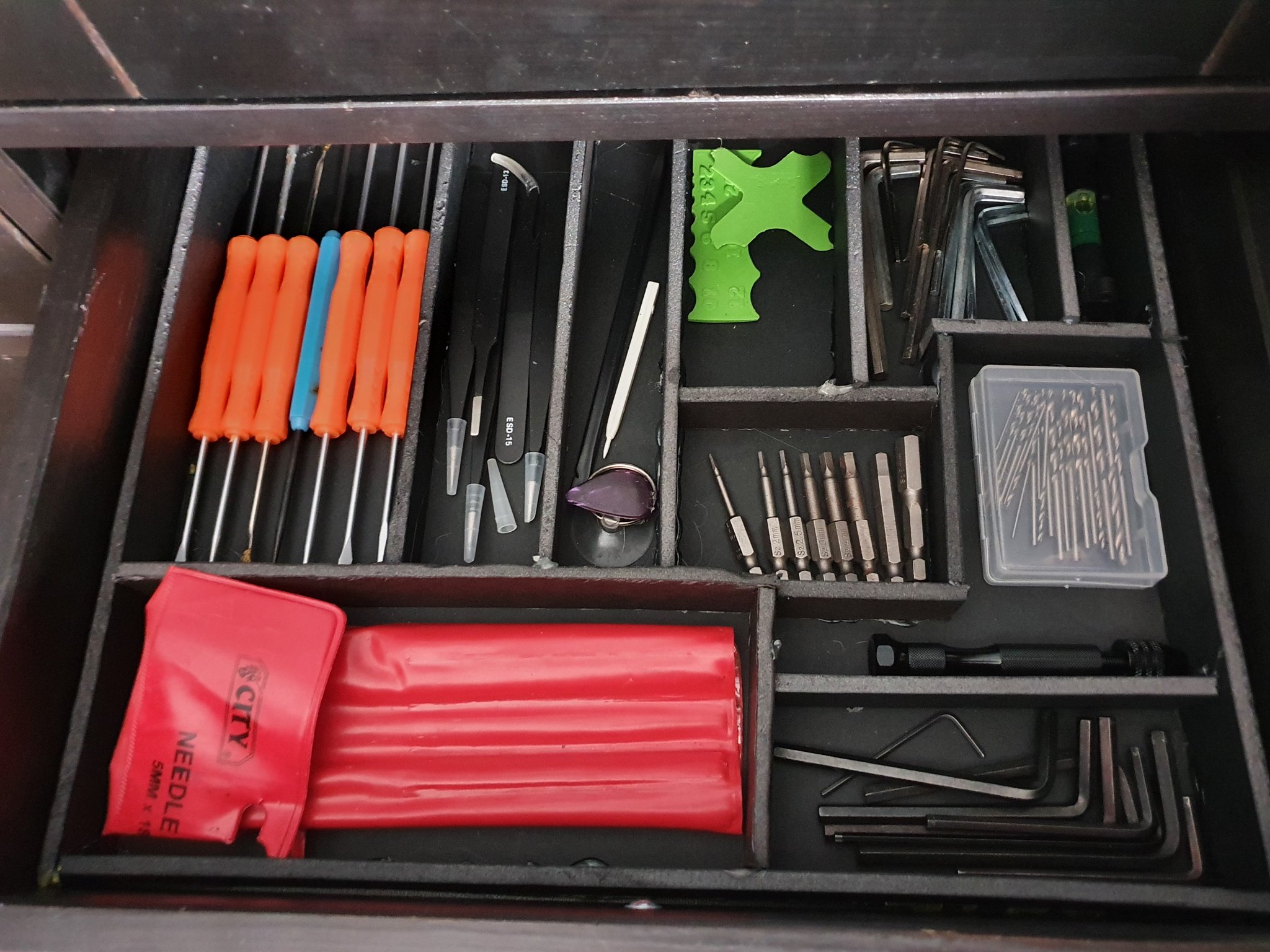 To get better access to tools in my closest drawer, I make dividers with foam core and hot glue. read this to see how I made them, what inspired it and perhaps get inspired to try this too.